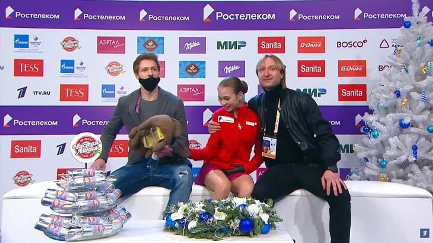 Плющенко предвкушал победу Трусовой: показывал палец вверх, потирал руки и обнимал Сашу. Но Тутберидзе снова его обошла