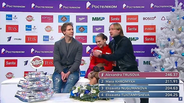 Александра Трусова выдала чистую произвольную программу на чемпионате России по фигурному катанию, но не выиграла. Хотя Евгений Плющенко, кажется, предвкушал успех.