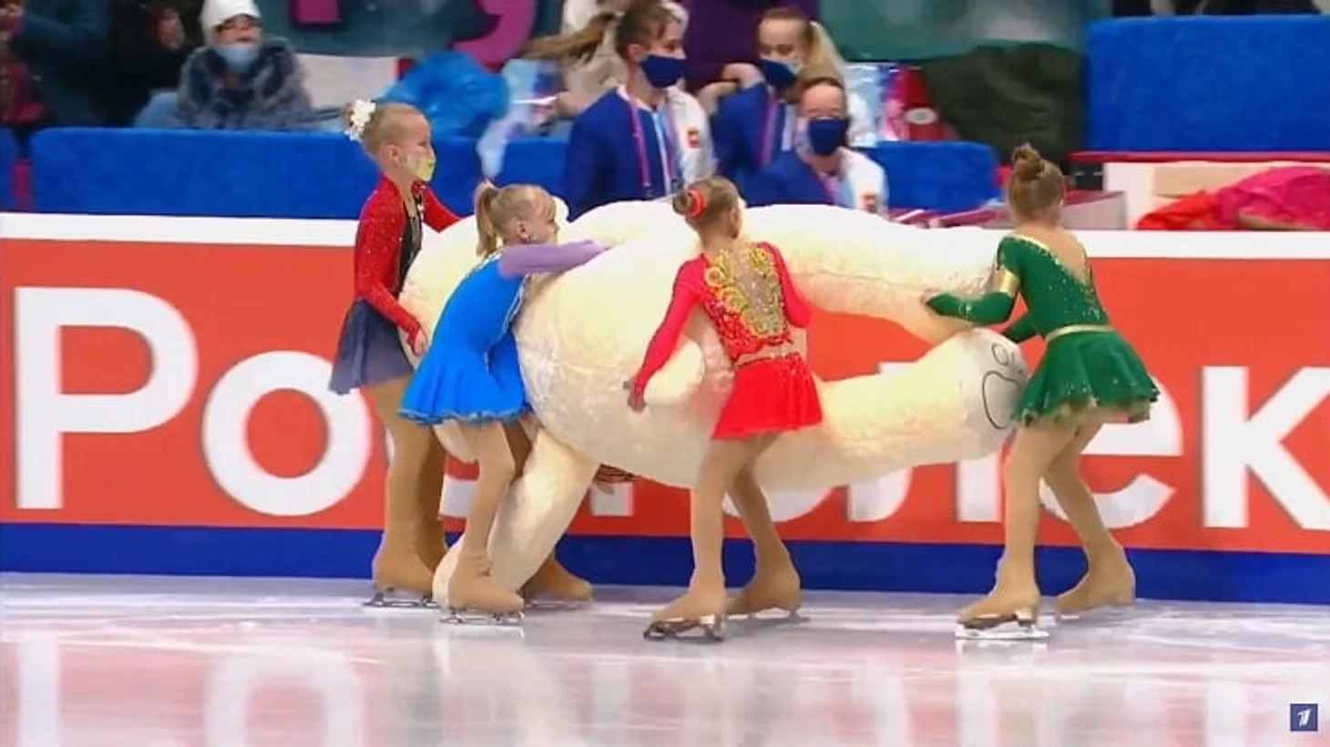 Казалось, что чисто откатавшую Трусову уже не победить. Все атрибуты победы были с ней: овации зала, огромный медведь от фанатов, довольный тренер.
