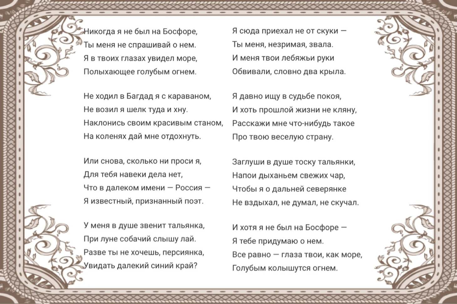 Волос червонную руду И голоса грудные звуки. Сирени темной в час разлуки Пятиконечную звезду.