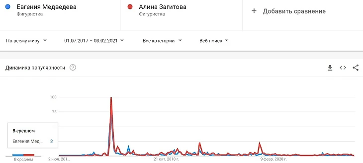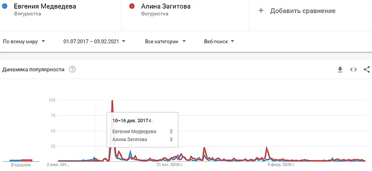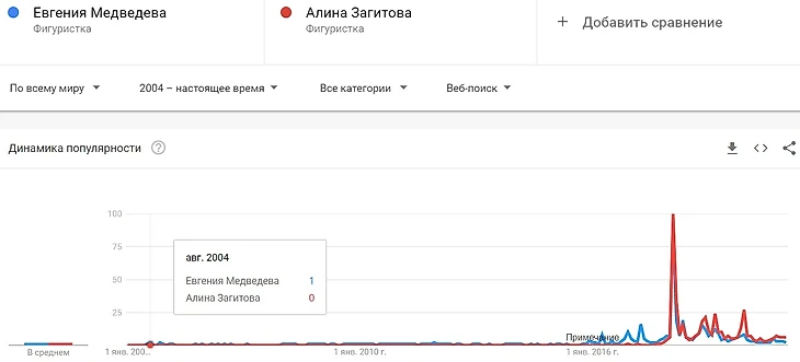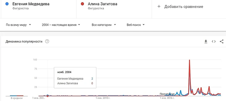 Олимпийская Чемпионка Алина Загитова в неумолимых и беспощадных трендах Google