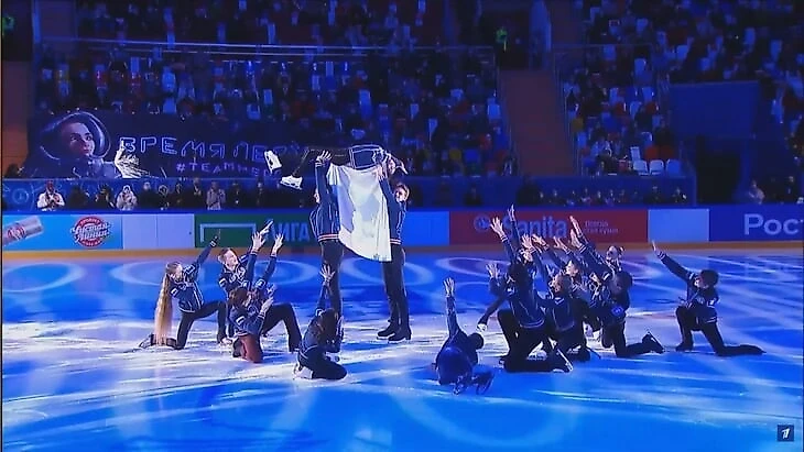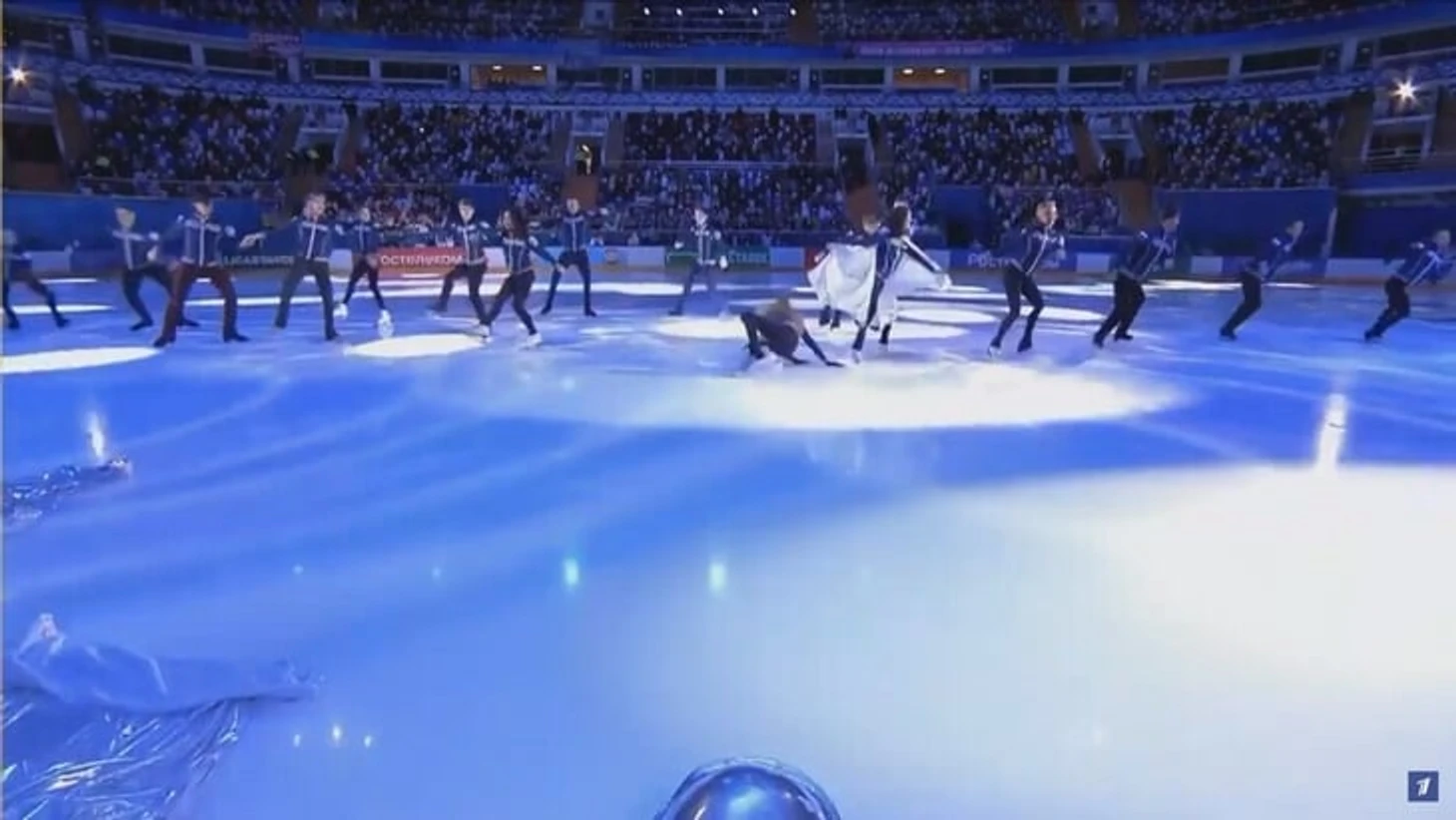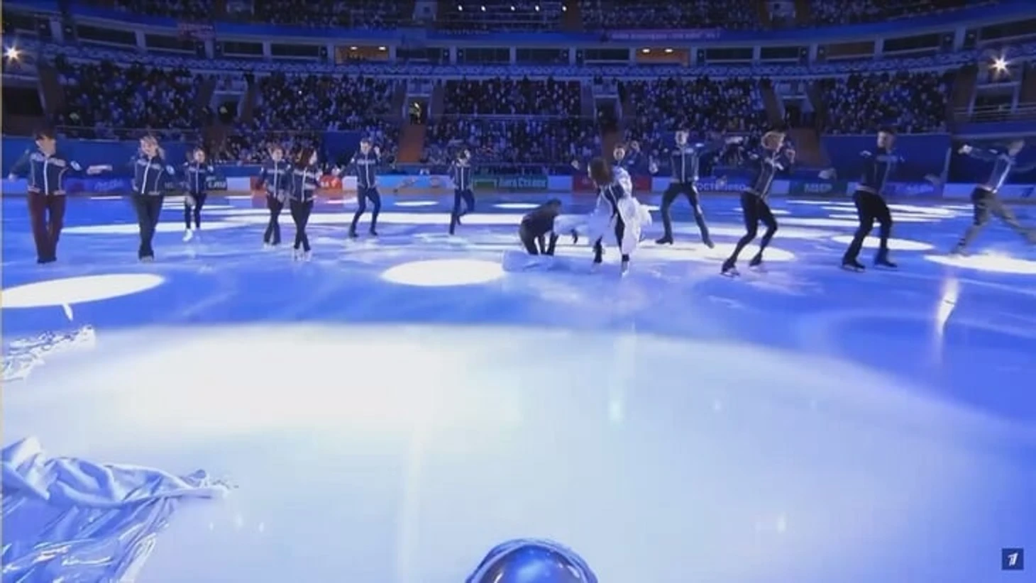 Первый – шоу-выход команд Алины Загитовой и Евгении Медведевой на лед «Мегаспорта».