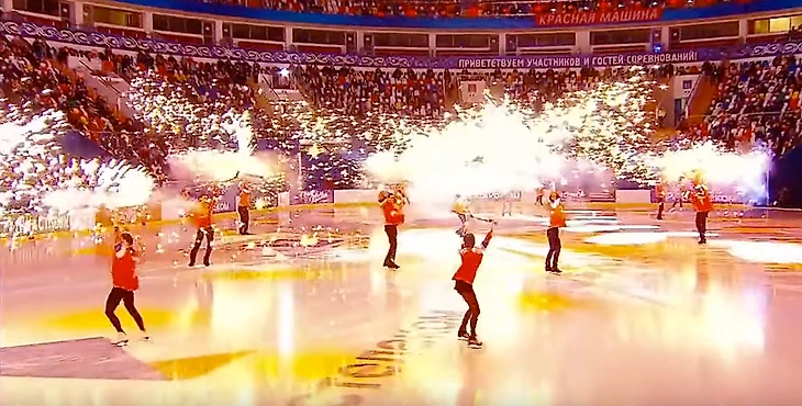 В копилку победных аналогий можно добавить и фейерверк в показательной презентации "Красной машины". Ну разве не круто?)