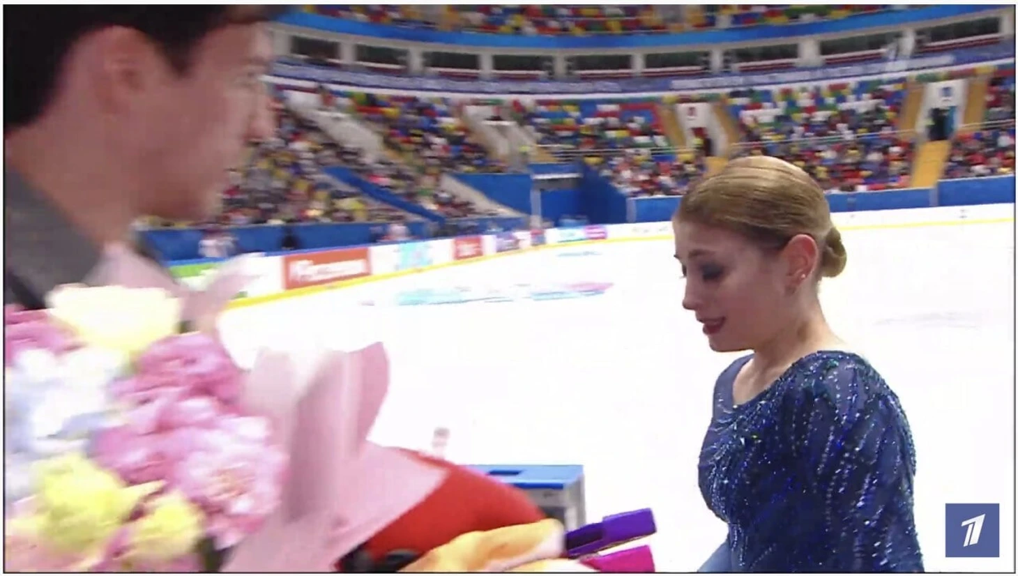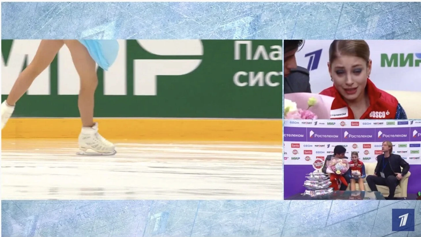 Алена, для которой это крайне скомканный и невнятный сезон, не выдержала: состроила гримасу сразу после проката, а потом и не сдержала слез.