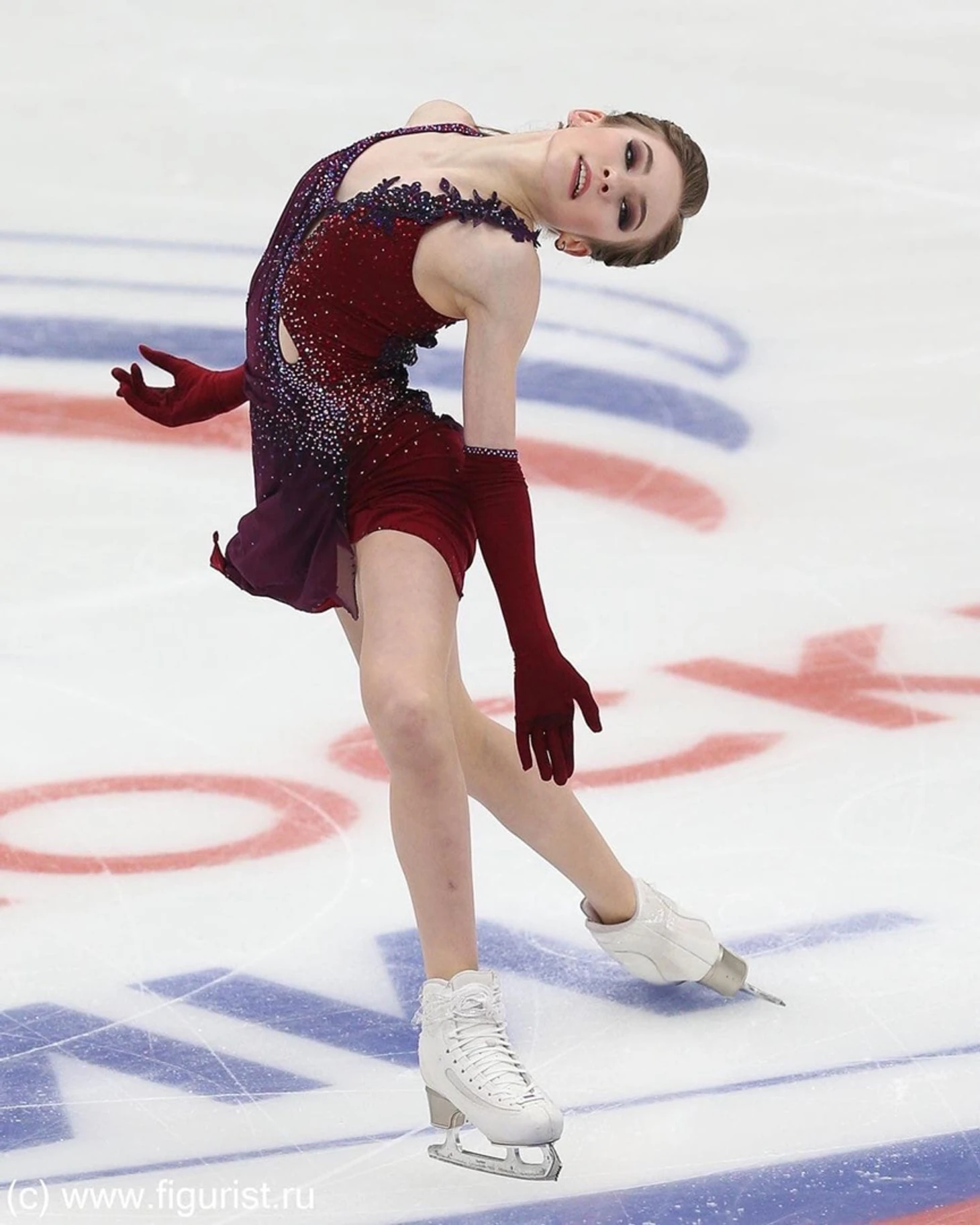 С набором тройных также успешно выступили Анна Фролова, Софья Самодурова с инопланетной программой, которая так ей идёт, задорная Мария Талалайкина с единственной ошибкой на дупле, примерно как и Майя Хромых, изысканная в исполнении Лиза Нугуманова (помню её, когда она ещё считалась вундеркиндом). Ксения Цибинова и Камила Султанмагомедова тоже запомнились мне с прошлого сезона. Недокруты в упор не разглядывала, но были много у кого.