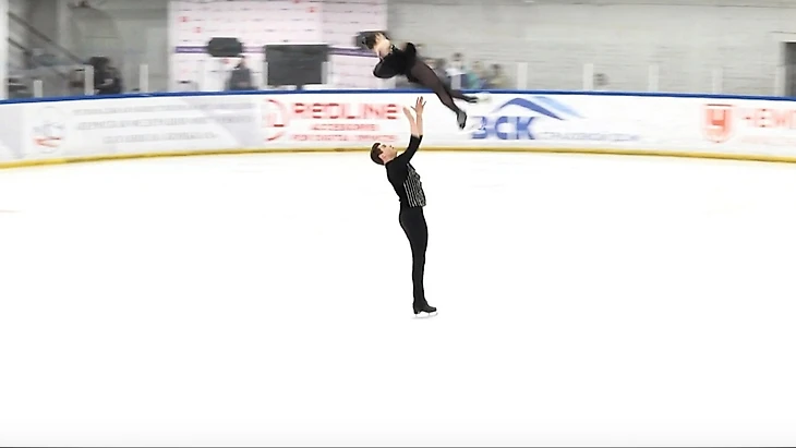 Третьими стали Екатерина Чикмарева - Матвей Янченков, которые не могут соревноваться с лидерами в силу слабой технической оснащенности - в их арсенале выброс пока лишь в два оборота. Но с эстетической точки зрения пара интересная и в случае прогресса может обратить на себя внимание. За сегодняшнее выступление они получили 58,48 баллов.