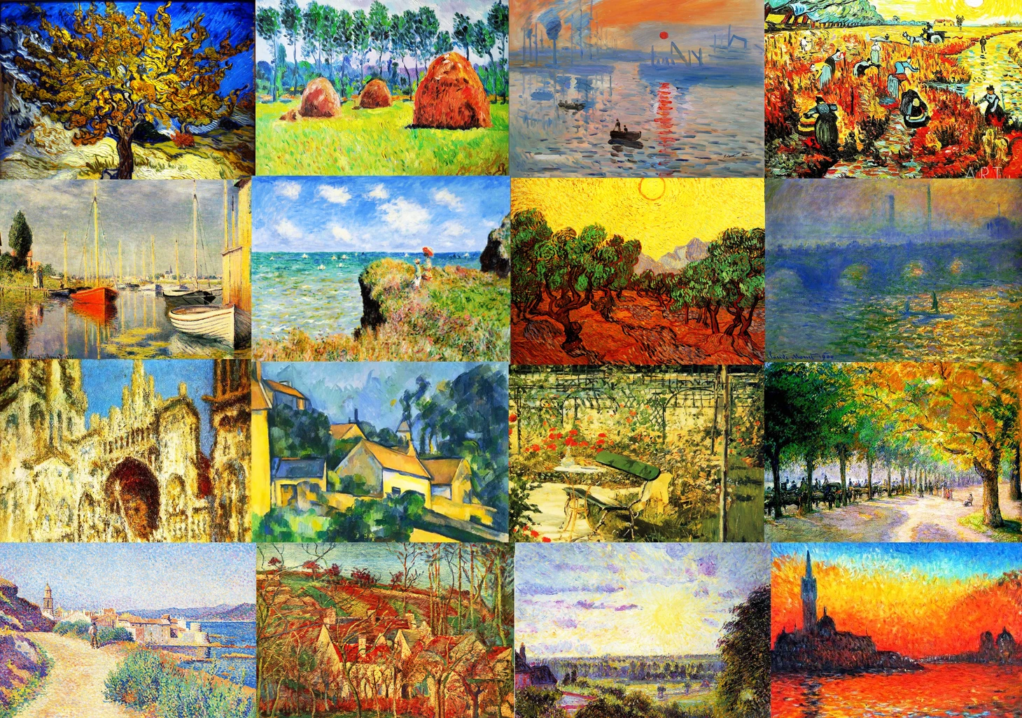 Рассмотрим полотна художников импрессионистов, повлиявших на творчество композиторов не только Франции (Сати, Дебюсси, Равеля), но и Европы, и России - М. де Фалья, О. Респиги, А. Казелла и Дж. Ф. Малипьеро, Ф. Дилиус, С. Скотт, К. Шимановский, Н. Н. Черепнин, В. И. Ребиков, С. Н. Василенко, А. Н. Скрябин, И. Ф. Стравинский ("Жар-птица", "Петрушка", опера "Соловей").