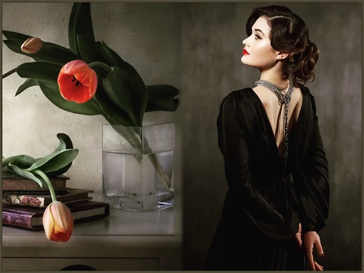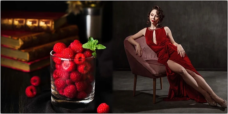 Шторка бордовая с кувшином нашлась и все срослось:) Никакого фотошопа.