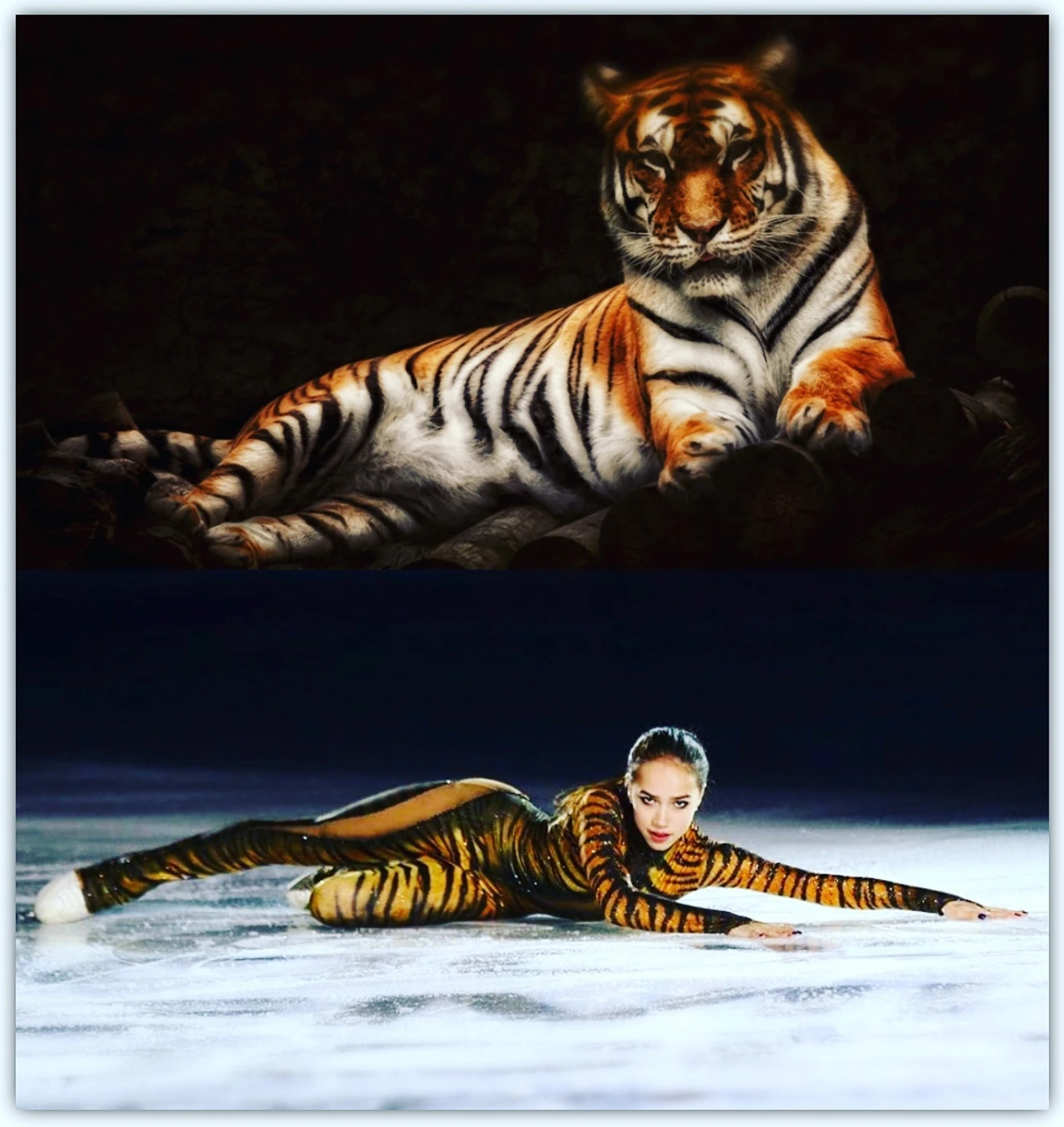 К вашему вниманию, уважаемые читатели блога, работы на фигуристов с тиграми. Я приурочила эти арты к очень важному дню. В подборках нет прямого сравнения спортсменов с тиграми, а была попытка выразить общее настроение, жизнеощущение, политуру эмоций, цвета, грацию этих удивительных диких кошек. Удалась ли мне эта попытка?! Судить вам!