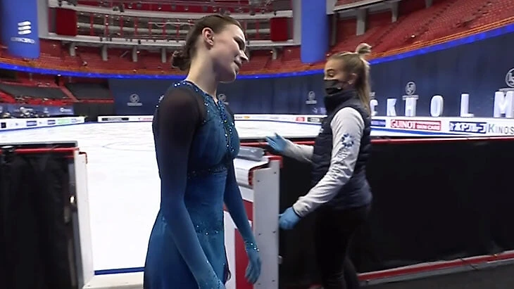 На выходе со льда Щербакова шумно дышала и морщилась.