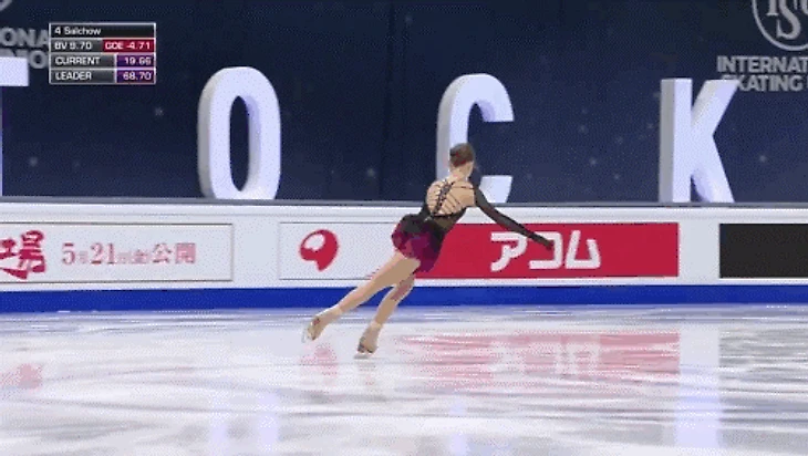 Попутно Саша осталась едиственной участницей ЧМ, кто вообще прыгал квады. И ещё обновила рекорд за максимальные баллы за каскад 4lz-3t теперь они у нее.