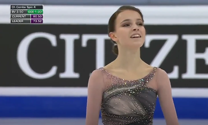 Четверной ожидаемо не пошел в ПП, однако, в отличие от Кихиры, Аня не развалилась и катала с той же подачей, будто и не упала совсем. А затем был неприятный момент, когда пошла на один лутц—ритт во второй половине и не решилась прыгать ритт с плохого выезда. А силы-то уходили.
