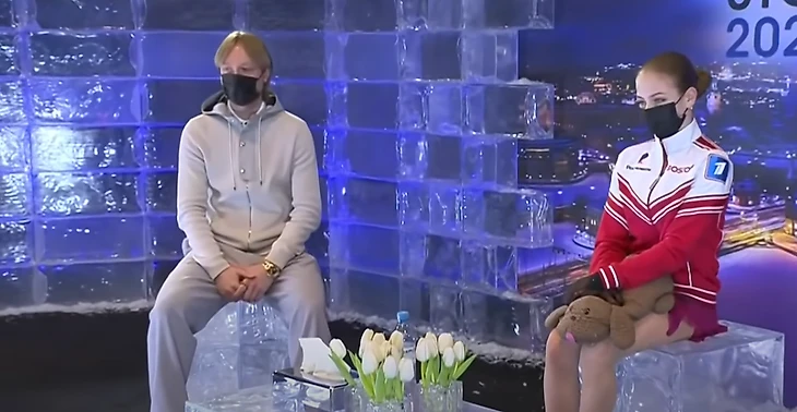 И вот здесь начались истерики среди блогеров на просторах Сети, скажем так. Один, поборник гения Тутберидзе и ругатель всех ее соперников, вдруг проорал, что Анна не готова и будет бороться только за бронзу. И начал винить… конечно же, Плющенко и Трусову, за то, что Трусова должна была сейчас выступать за его любимую «тим-Тутберидзе».