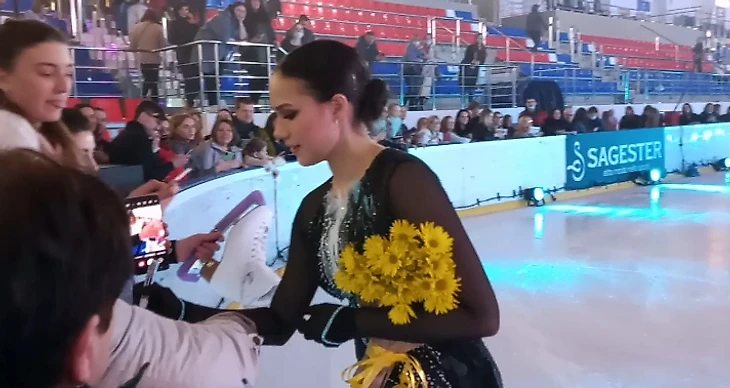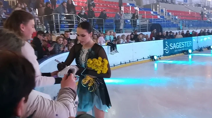 Кстати, насчет автографов. После шоу люди все ждали Алину у бортиков, и она всем уделила внимания по-максимуму, особенно детям. Наблюдать за этим было тоже особое удовольствие. Вообще, у Алины было очень хорошее настроение, она много фотографировалась с Тиффани и Джоником, шутили там, смеялись, и после всего этого она пошла к людям. Со льда Алина ушла практически самая последняя, вместе с Тиффани. Подозреваю, как она могла устать, но виду не подавала совсем. Ни капли раздражения, ничего не тяготило её, всё - очень достойно!
