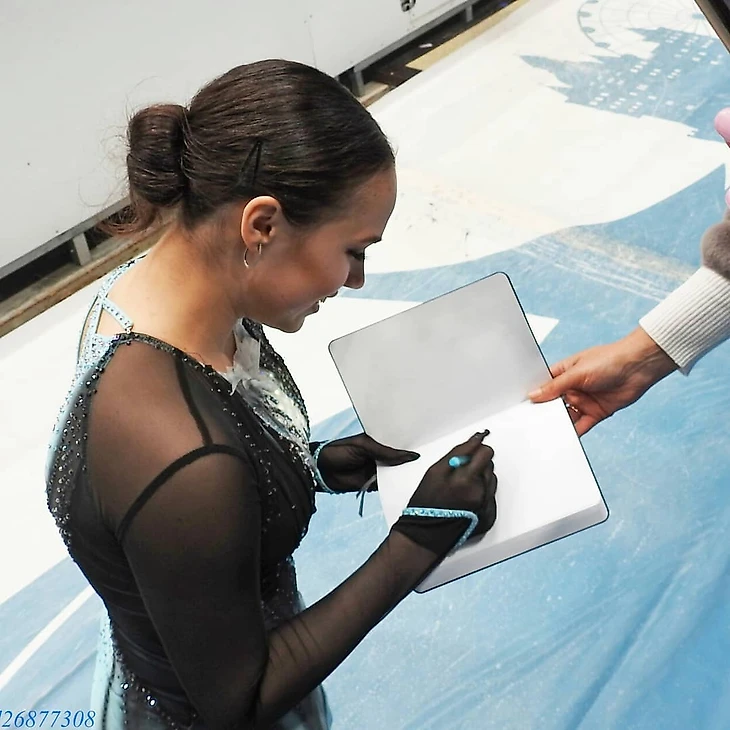 К моей великой радости, у меня ещё получилось взять автограф! Была возможность ещё и сделать селфи, те кто были справа и слева от меня, все сделали, но мне уже было достаточно, что я видела её очень близко, сняла на видео и получила автограф. Так что свою программу максимум я выполнила на все 150%. Теперь автограф Алины стоит у меня дома на полке рядом с фотографиями дорогих мне людей.