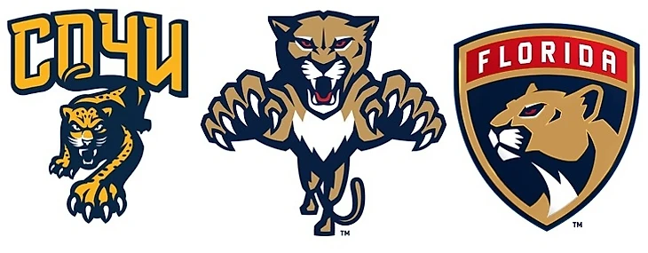 И раз мы уже поднимали момент сравнения со спорт. командами, то можно его продолжить и здесь. В Сочи есть одноименная хоккейная команда ХК «Сочи». Свой логотип они содрали с ранней версией эмблемы ХК «Флорида», только похоже заменили пантеру на леопарда. При этом один из городов штата Флорида – Таллахасси, является побратимом выше упомянутого Краснодара. Я веду к тому, что нынешняя эмблемы «Флориды» (самая крайняя), на мой взгляд, соответствует и образу Алины.