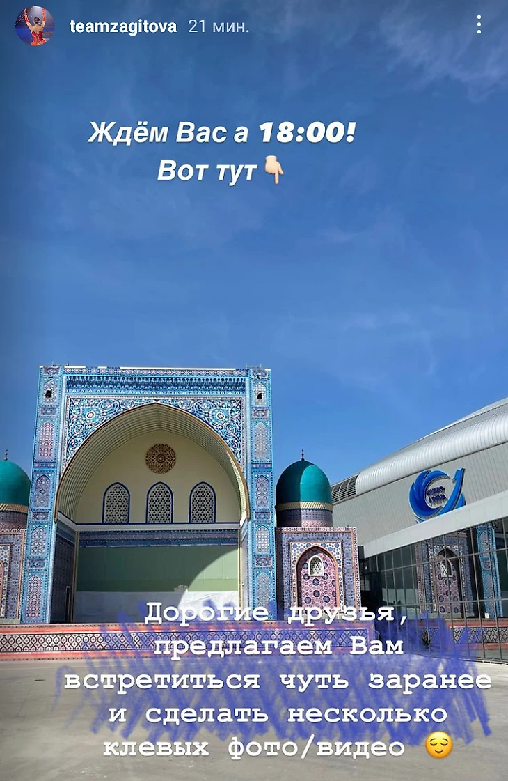 Хочу сказать огромное спасибо потрясающим ребятам из группы Alina Zagitova Media for fans. Вы невероятные! Без вас было бы совсем плохо, ну правда. Ведь только вы показывали нам всё, что связано с Алиной, и только с ней, включая самое интересное — подтрибунку! И как мы все расстроились, когда вам потребовалось удалить контент по Казани и Москве, и как мы радовались, что вы снова появились. Успехов вам! И побольше денег для осуществления вашей, очень нужной нам всем, деятельности! СПАСИБО!