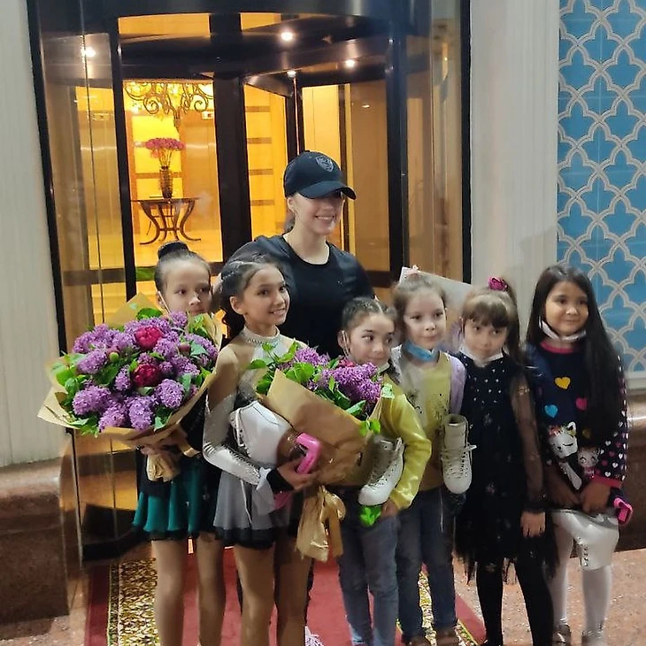 Алина с детками из местной школы фигурного катания в Ташкенте