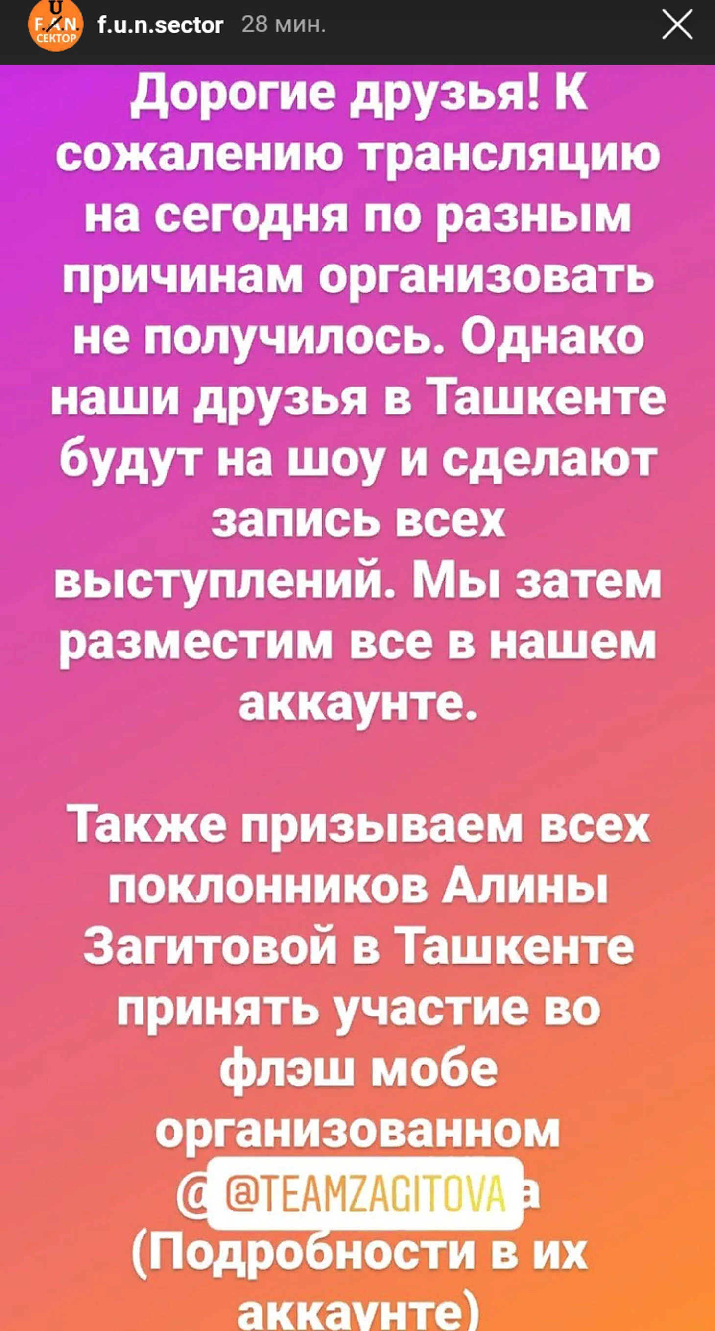 А вот и хорошая новость от Тимзагитовой - они в Ташкенте, приехали поддержать нашу Алиночку, и уже готовятся к, привычному нам уже, флешмобу, а у нас появилась надежда на трансляцию, хотя бы номера с Алиной мы можем увидеть! Ура!