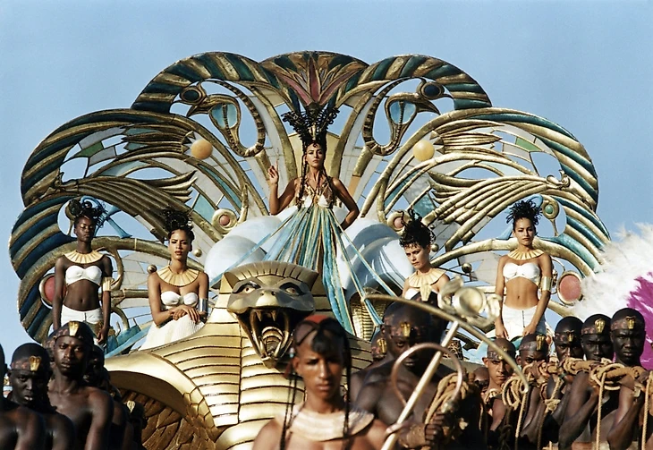К той же «Клеопатре» напрашивается очевиднейшая подводка, благо что в шоу можно делать все, что пожелаешь. Берем каноничную сцену прибытия «Клеопатры» в Рим. Сцену, которой всегда уделяют особое внимание в любой экранизации про царицу. Контекст такой: жители Рима, самого прогрессивного государства в мире, видели уже всё, и очередной царицкой их не удивить, но едва она ступила на римскую землю, как у них глаза на лоб полезли, такого наблюдать им ещё не доводилось.