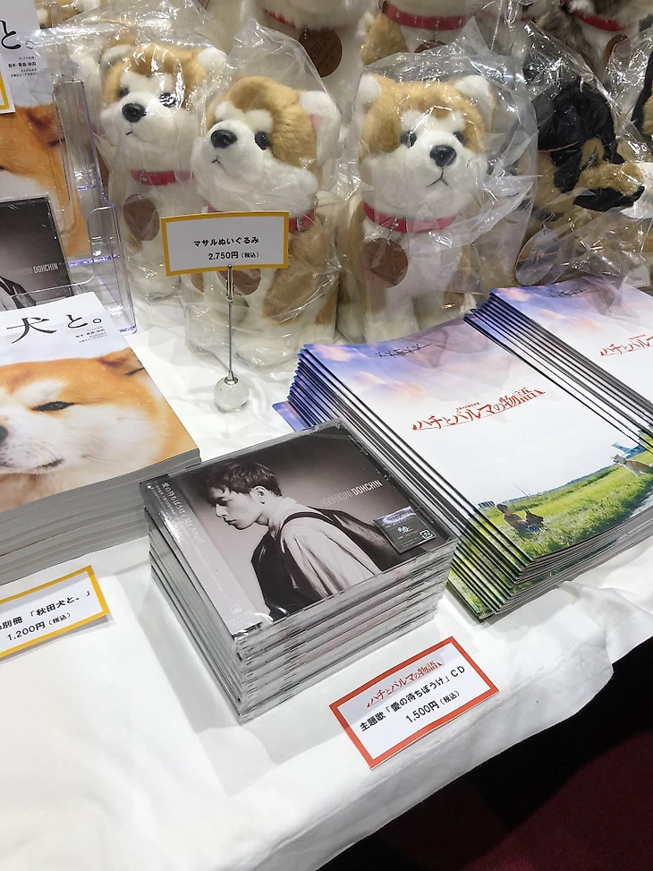 А пока Алина вся в работе, сегодня, 21 мая начинаются показы фильма "Пальма" в некоторых городах Японии, о чём сообщается в твиттере, а пришедшие зрители смогут приобрести игрушечных Масару и Пальмы(овчарки из фильма):
