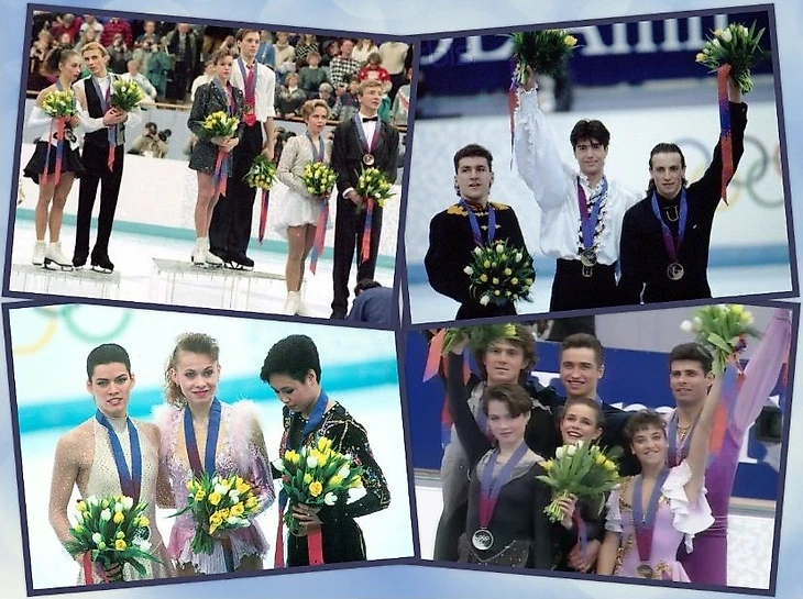 Олимпийские чемпионы-1992: Марина Климова/Сергей Пономаренко, Виктор Петренко, Кристи Ямагучи, Наталья Мишкутёнок/Артур Дмитриев.