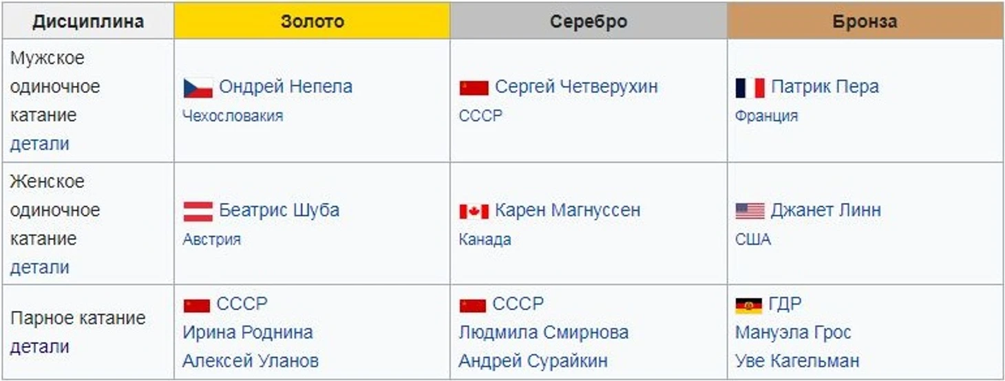 Олимпийские чемпионы-1972: Ондрей Непела, Беатрис Шуба, Ирина Роднина/Алексей Уланов.