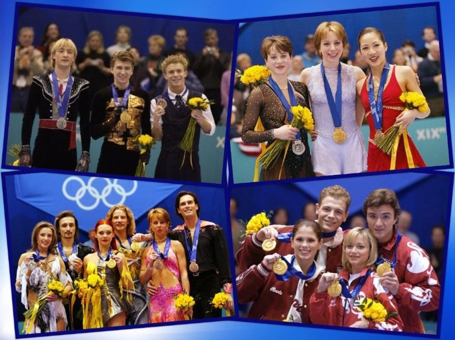 Олимпийские чемпионы-2002: Алексей Ягудин, Жами Сале/Давид Пеллетье, Марина Анисина/Гвендаль Пейзера, Елена Бережная/Антон Сихарулидзе, Сара Хьюз.