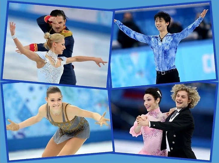 Олимпийские чемпионы-2014: Татьяна Волосожар/Максим Траньков, Юдзуру Ханю, Аделина Сотникова, Мэрил Дэвис/Чарли Уайт.