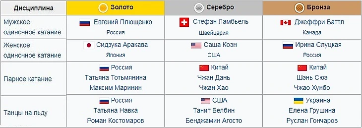 Медалисты Олимпиады-2006