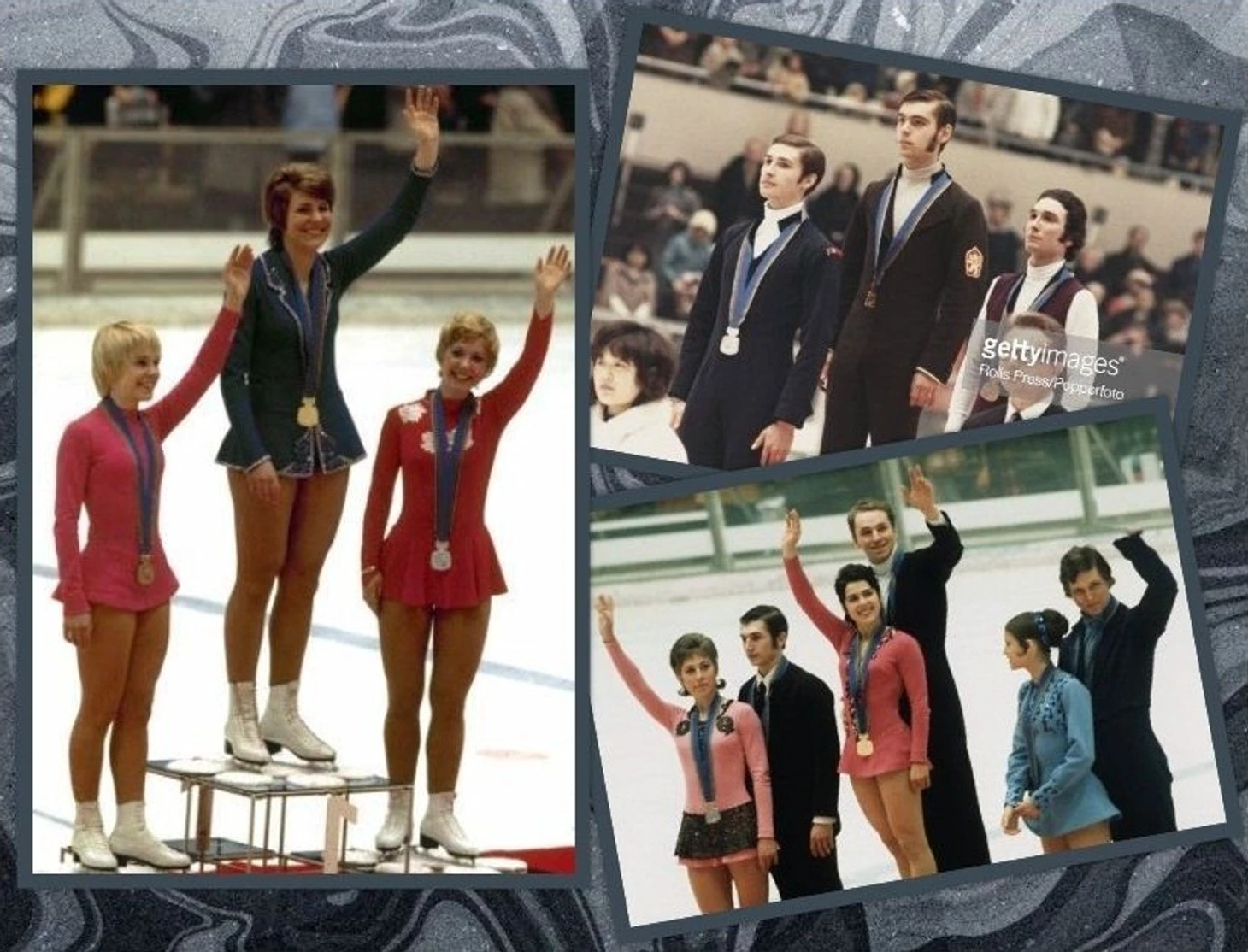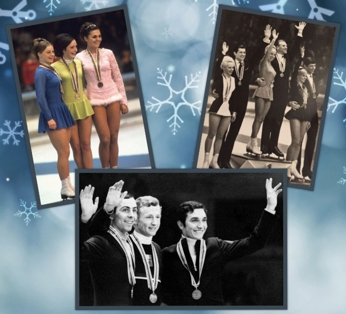 Олимпийские чемпионы-1968: Людмила Белоусова/Олег Протопопов, Пегги Флеминг, Вольфганг Шварц.