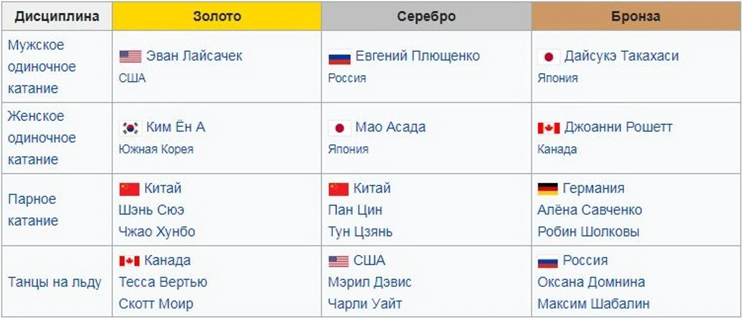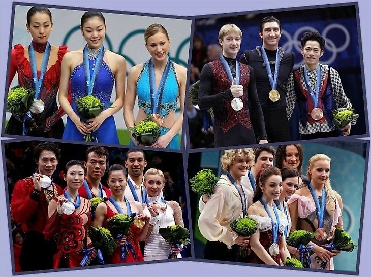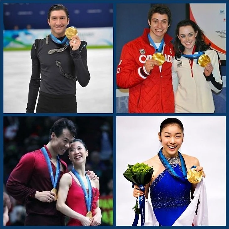 Олимпийские чемпионы-2010: Эван Лайсачек, Тесса Виртью/Скотт Моир, Шэнь Сюэ/Чжао Хунбо, Ю-На Ким.