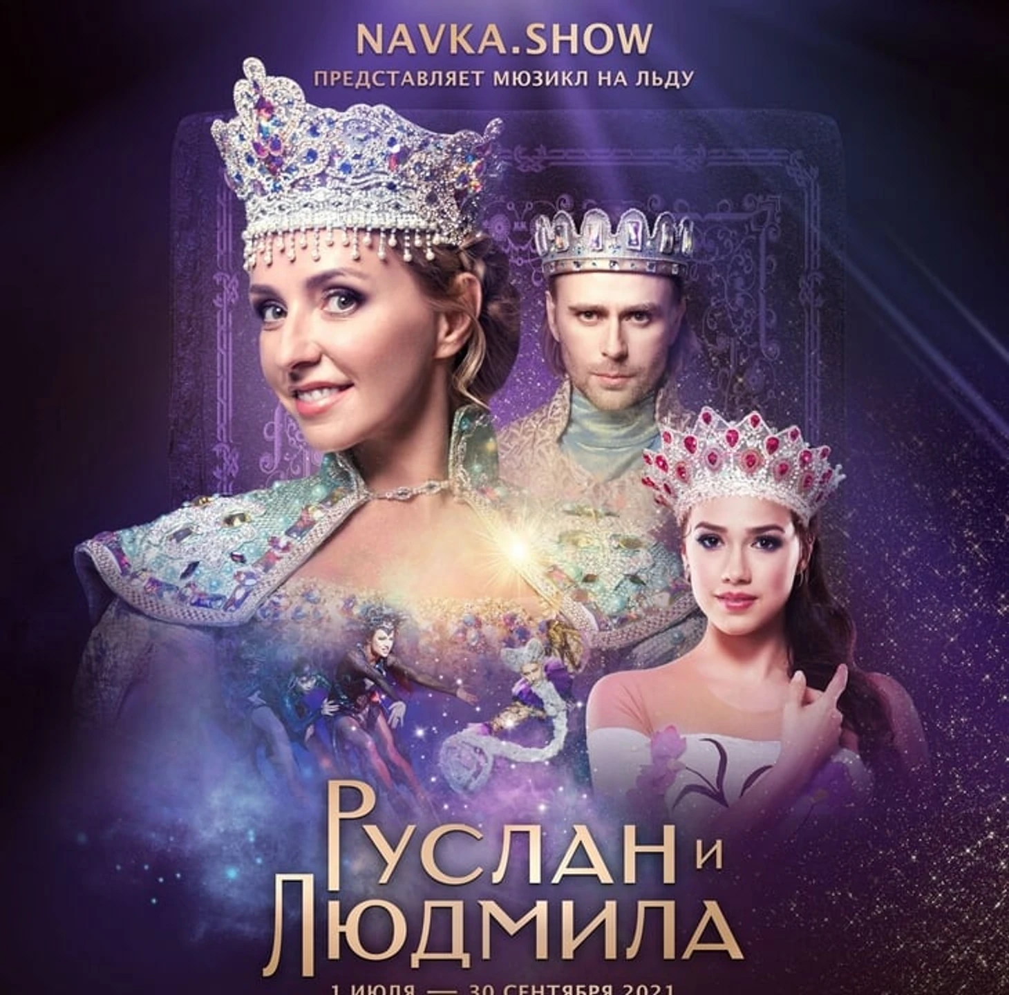 UPD: планировалось, что в июле роль Людмилы исполнят только Навка и Загитова, но в расписание внесли изменения – Татьяна Волосожар вернется на лед после рождения ребенка уже летом, к труппе присоединилась и чемпионка Сочи-2014 Аделина Сотникова. Теперь у шоу четыре Людмилы.