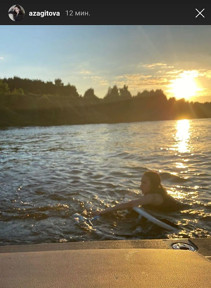 А Алина, тем временем, продолжает осваивать водную стихию, о чем рассказали нам её новые сторис.