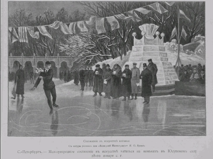 Первые соревнования фигуристов прошли здесь в марте 1878 года
