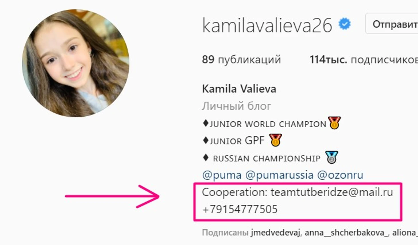 Кроме всего вышеперечисленного, Этери Гогиевна Тутберидзе также известна как директор ООО "Тим Тутберидзе", а данное ООО засветилось как менеджер по коммерческим контрактам Камилы Валиевой, о чем гордо сообщается на ее страничке: