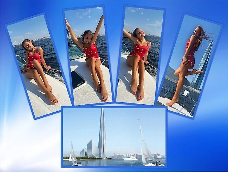 Анастасия Мишина (Крым, второй коллаж – по заливу на сапборде)