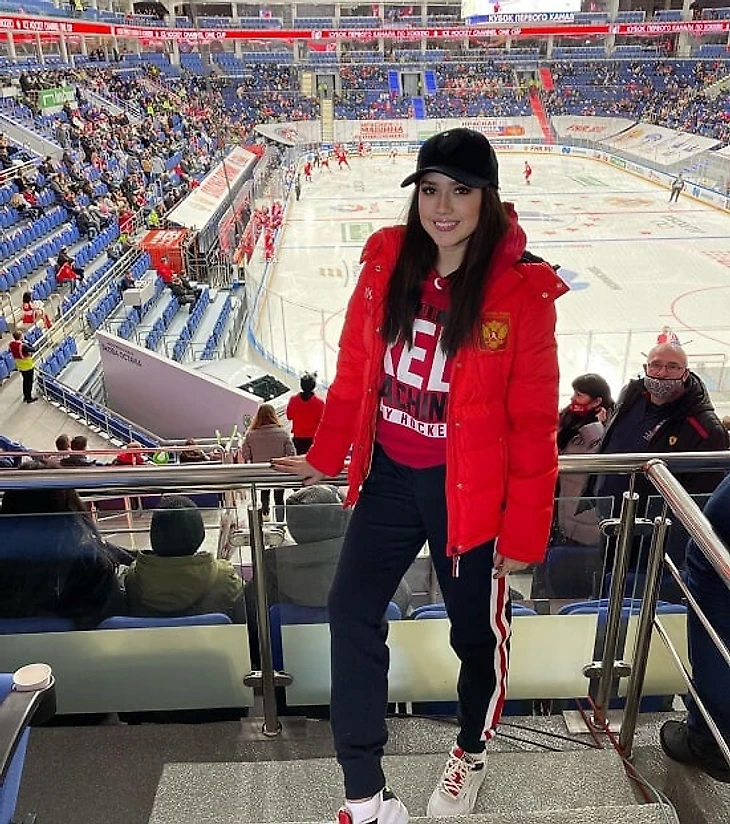 По ходу хоккейного ЧМ-2021 Загитова записывала видеообращение к сборной России, а во время поездки в Торонто посещала хоккейный Зал славы.