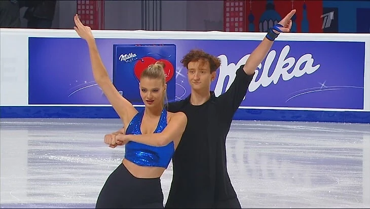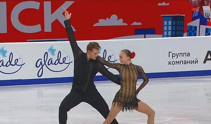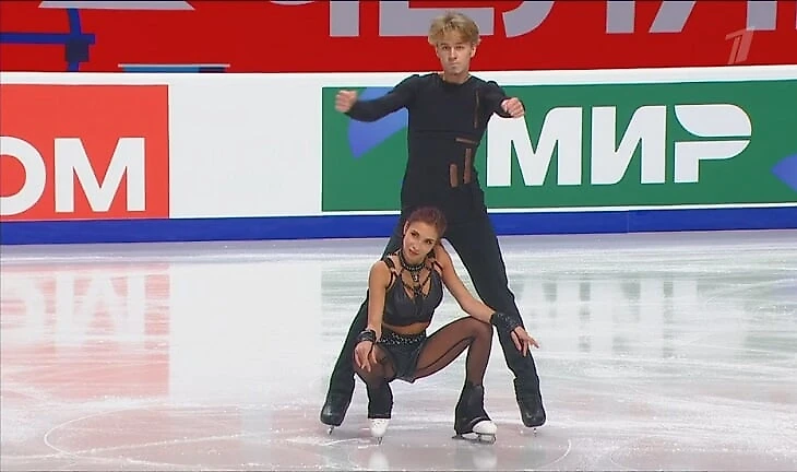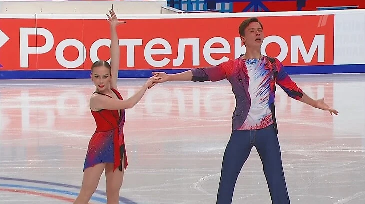 12 сентября, 15:19 Яркие Юлия Артемьева и Михаил Назарычев откатали с ошибками – двойной аксель-тройной сальхов через ойлер, тройная подкрутка, тройной тулуп (ошибка), выброс в тройной лутц (ошибка), выброс в тройной риттбергер.