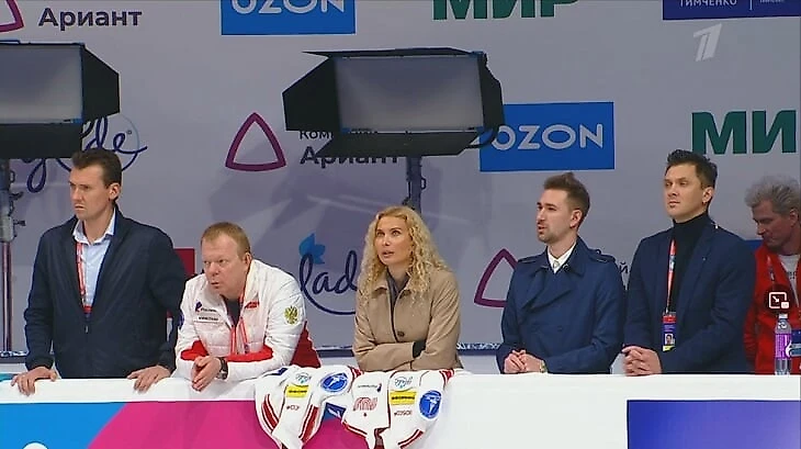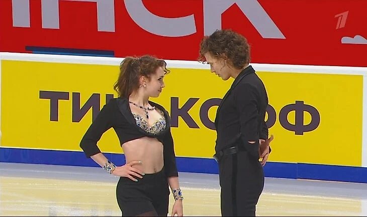 После проката Тутберидзе сразу подходит к Тарасовой и что-то долго ей объясняет.