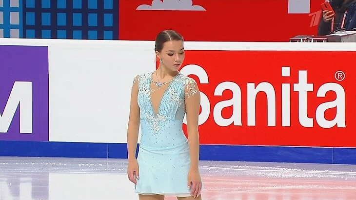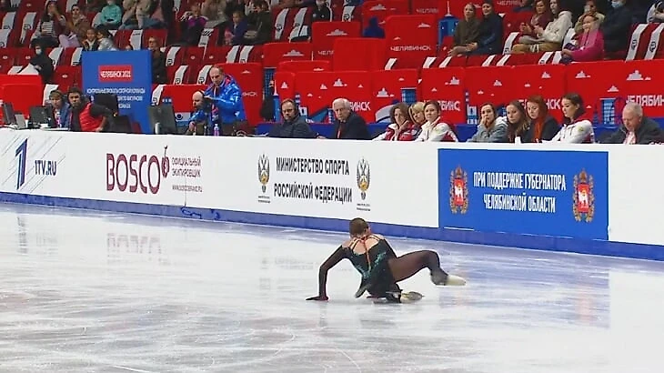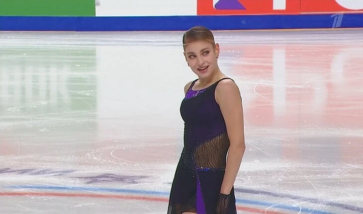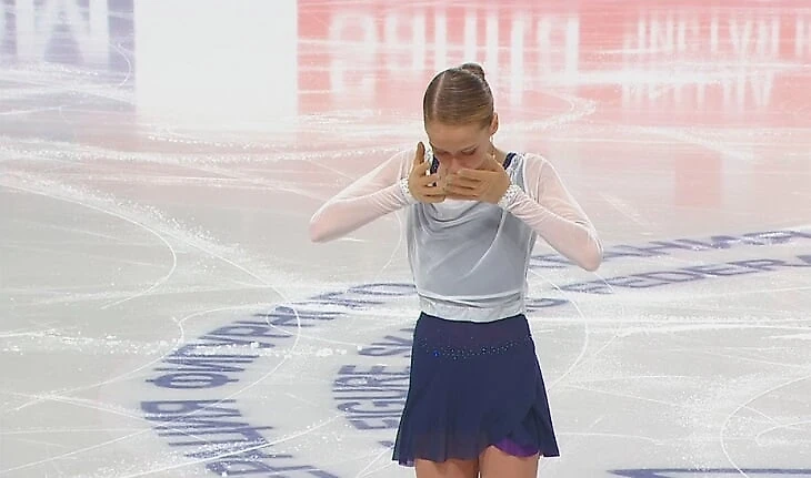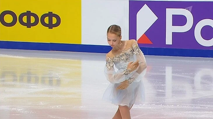 12 сентября, 17:21 У Елизаветы Туктамышевой тройные аксели не пошли – сначала степ-аут, а потом и вовсе срыв.