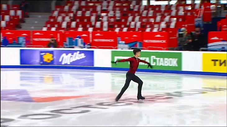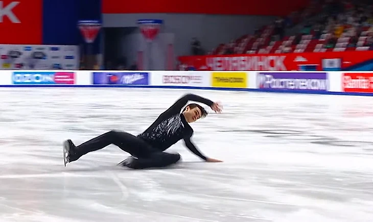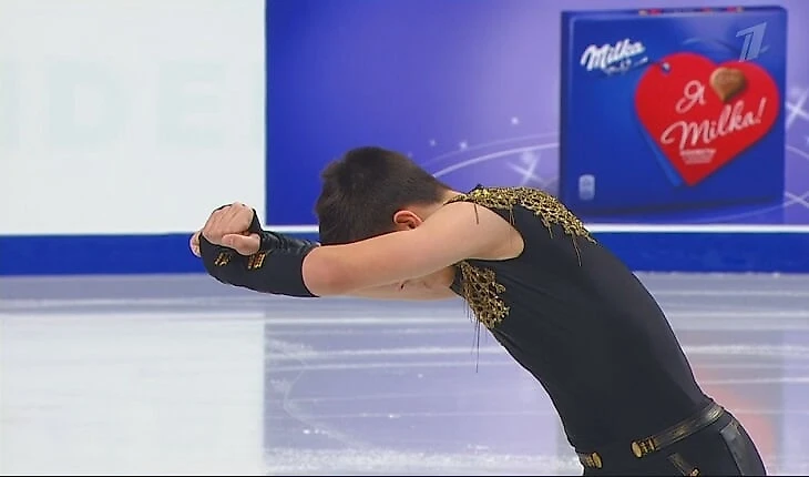 Тоже не без ошибок – упал с четверного тулупа, но чисто сделал тройной сальхов, тройной аксель-тройной тулуп, тройной риттбергер, четверной тулуп-двойной тулуп, сорвал тройной аксель и ошибся на тройном лутце.