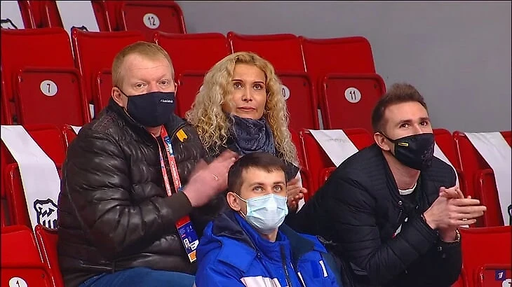 А пока – бодрый прокат ритм-танца и Диана с бордовыми волосами. А Тутберидзе болеет за дочку с трибун.