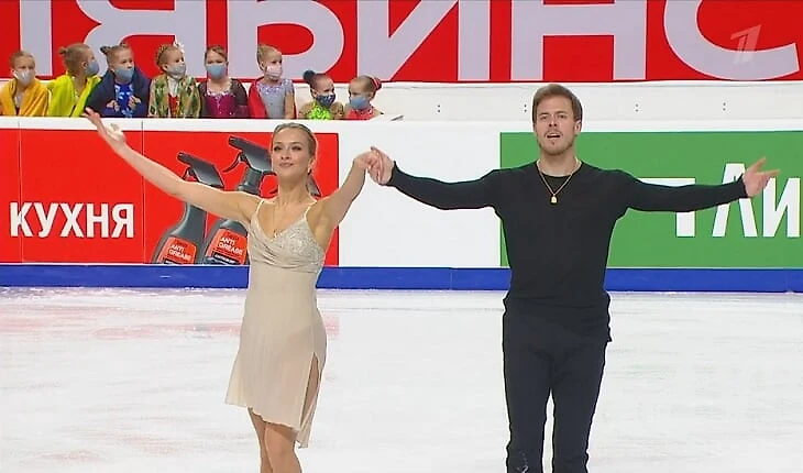 11 сентября, 12:28 Первую разминку закрыли Аннабель Морозова и Андрей Багин – трибуны очень активно встречали фигуристов.