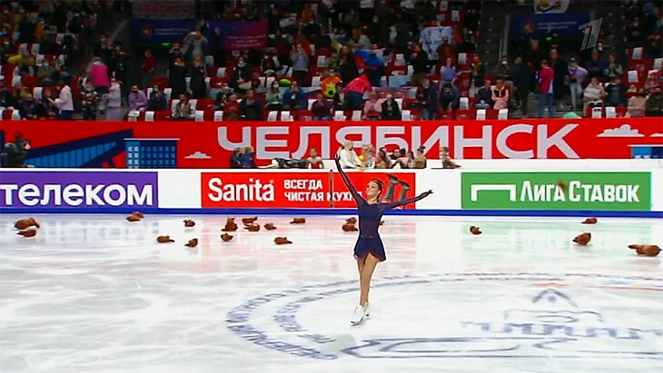 Мишки летели и потом, но Аня будто открыла эту дверь – мостик с приятным прошлым: вспомните, когда был последний пухопад? Кажется, еще в самом начале 2020-го – с тех пор зрители либо пропали с трибун, либо сидели, но с запретом бросать что-то на лед. Теперь можно и это – такой привет из прошлой (нормальной) жизни.