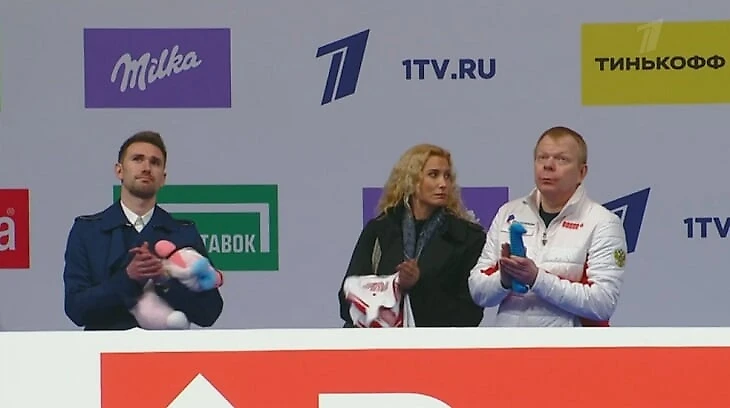 Этери Тутберидзе и Глейхенгауз, судя по всему, тоже были довольны: все аплодируют.