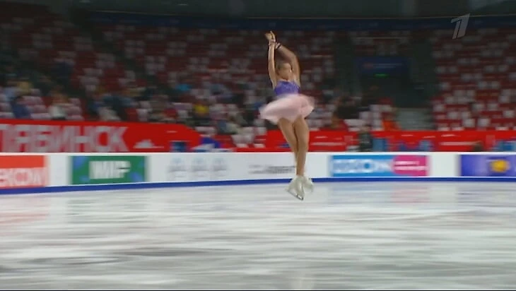 • Вообще, в этой программе пока что удалось все. С элементами у Камилы не было никаких проблем – чистый тройной аксель с поднятой вверх рукой (тано), плюс тройной флип и каскад тройной лутц-тройной тулуп с двумя поднятыми руками (риппон). Все прыжки высокие и уверенные.