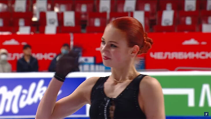 Именно в этой комбинации, в этом ритме прыжки сложились в мозаику – и программа выглядит цельно, как концерт. То, что раньше зачастую не удавалось Трусовой: она либо губила первый прыжок и нервничала, забывая о хореографии, образе, теме; либо падала столько, что программа разбивалась на осколки (как на ЧМ) – и это было катанием от прыжка к прыжку.