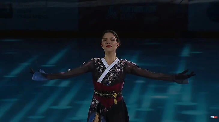 Премьеру Евгении ждали почти весь концерт, хотя уже на тренировке было понятно, что она выступит с «Алегрией». Это постановка популярного хореографа Ше-Линн Бурн. Канадка славится интересными находками и необычными решениями.