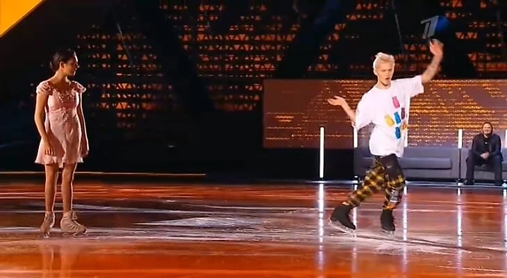 «Мой уровень катания на коньках по сравнению с Женей – троечка, наверное. Я ничего не ожидаю от проекта. Получается, я не хочу расстраиваться, поэтому ничего не жду», – шутил он в видео, которое показали перед прокатом.